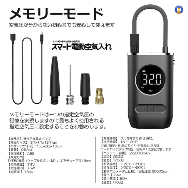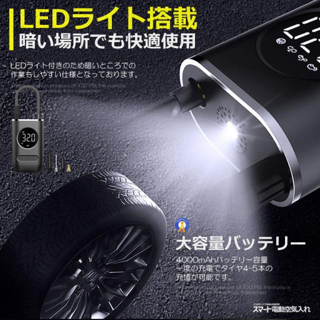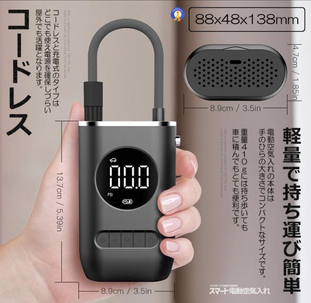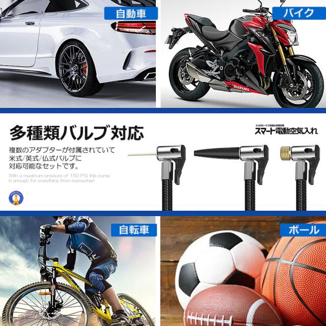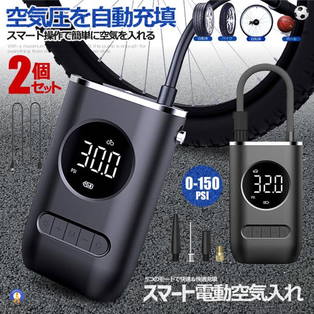 2個セット 全バルブ対応 電動 空気入れ タイヤ 空気圧 自動車 自転車 空気入れ 電動 エアポンプ 電動 AIRINFURA s-kk2409-55a