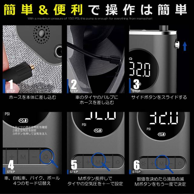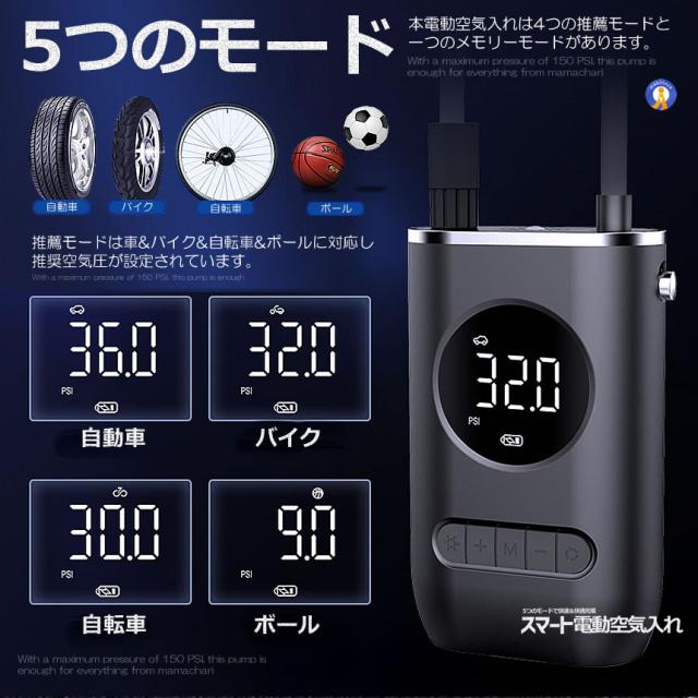 本電動空気入れは4つの推薦モードと