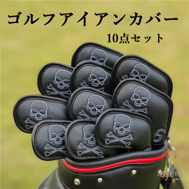 ゴルフアイアンカバー アイアンカバー ゴルフウッドカバー ヘッドカバー 防水PU素材 骸骨仕様 ドクロ仕様 ゴルフカバー ゴルフ用品 10点セット 番手付き 保護