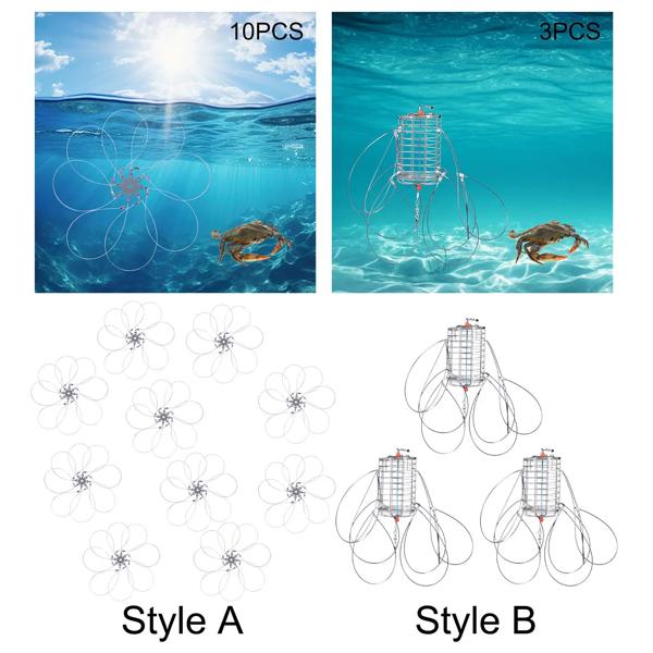 【特徴】: カニ捕獲ケージは可動式フットバックルで設計されており、調整可能で繰り返し使用できます。水に入ると自動的に広がります