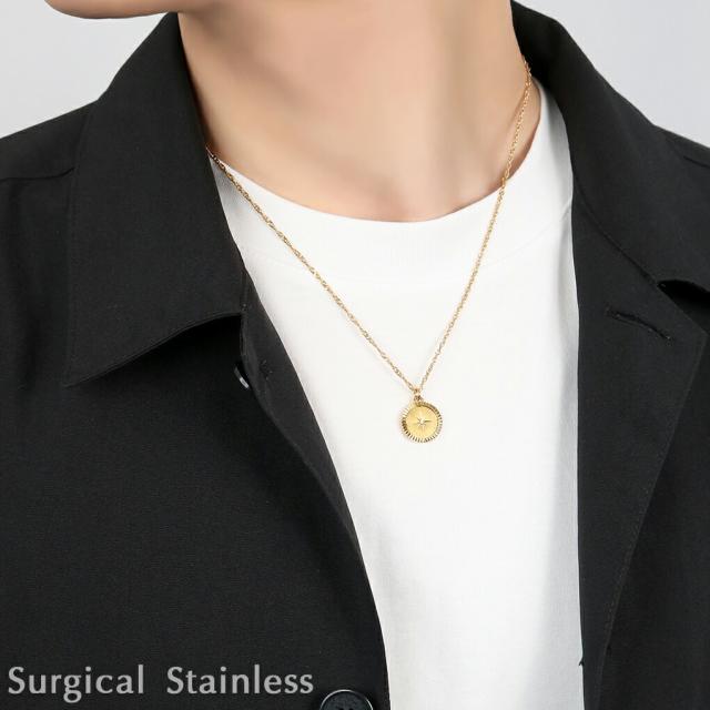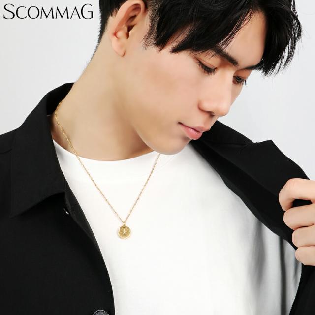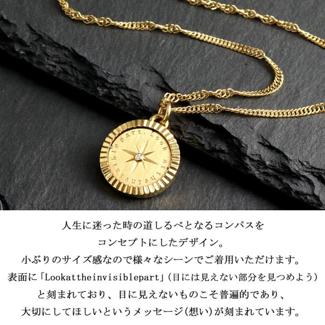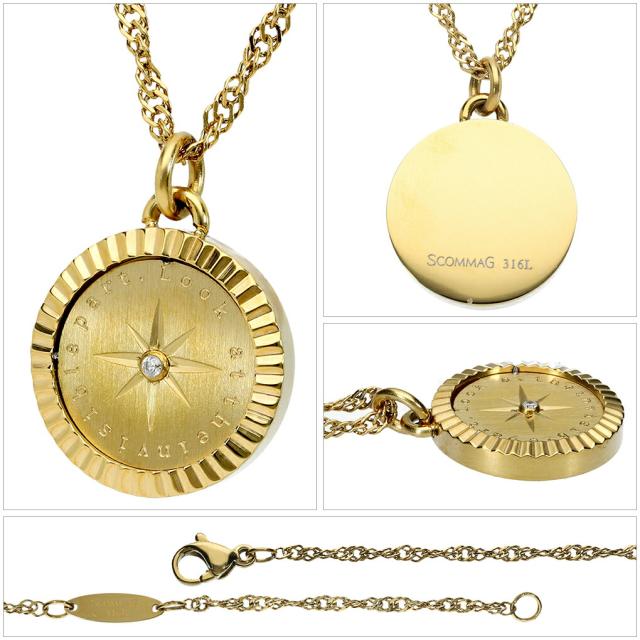 SCOMMAG コンパス コイン ステンレス ネックレス ゴールドカラー (チェーン付き) ペンダント メダル コイン メンズネックレス ジルコニア