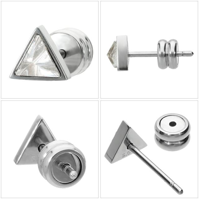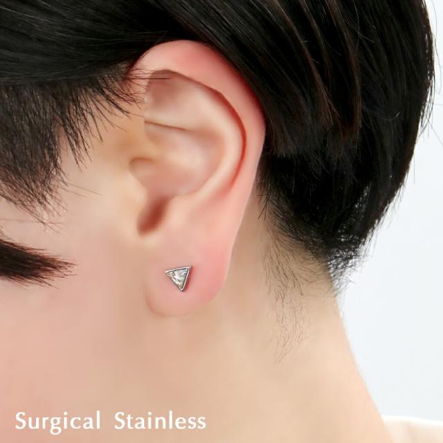 SCOMMAG トライアングル ステンレス ピアス 1P 片耳用 ジルコニア ステンレスピアス スタッドピアス サージカルステンレス 金属アレルギー