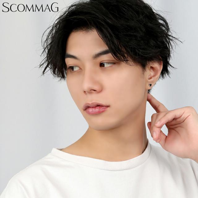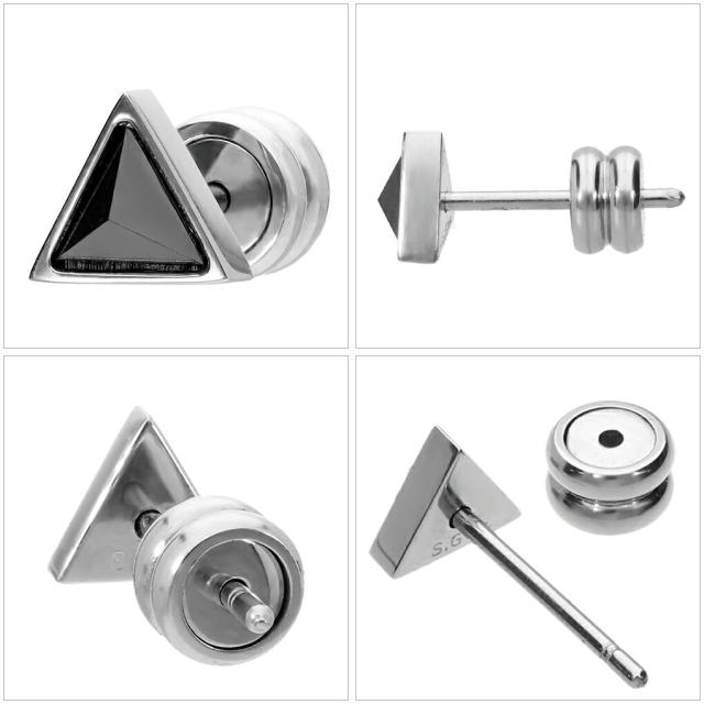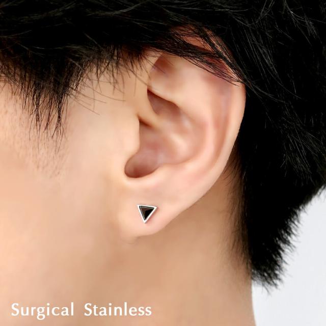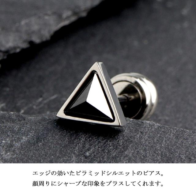 SCOMMAG トライアングル ステンレス ピアス 1P 片耳用 ブラックジルコニア 黒 ステンレスピアス スタッドピアス サージカルステンレス 金属アレルギー