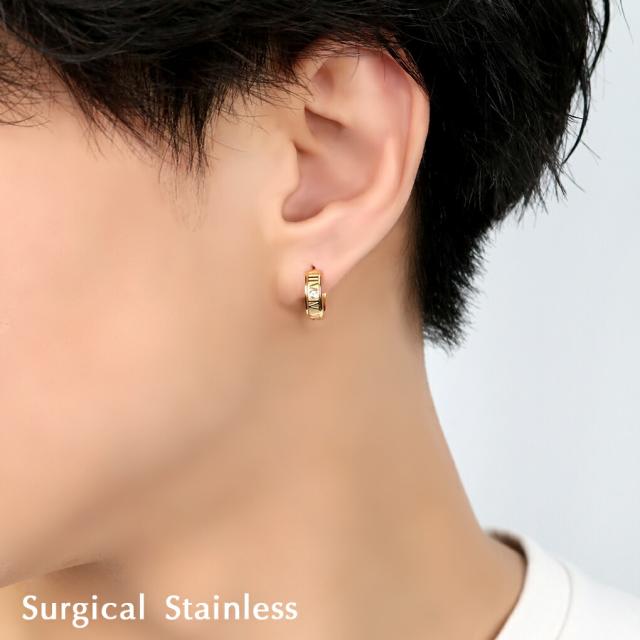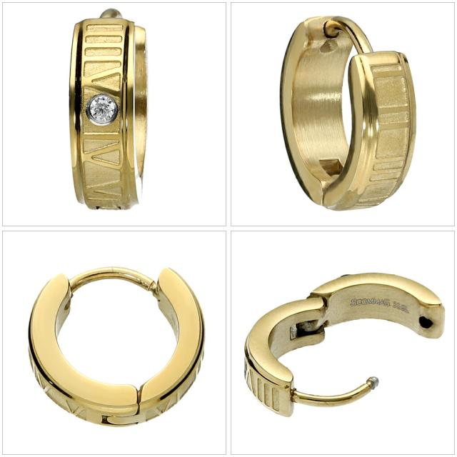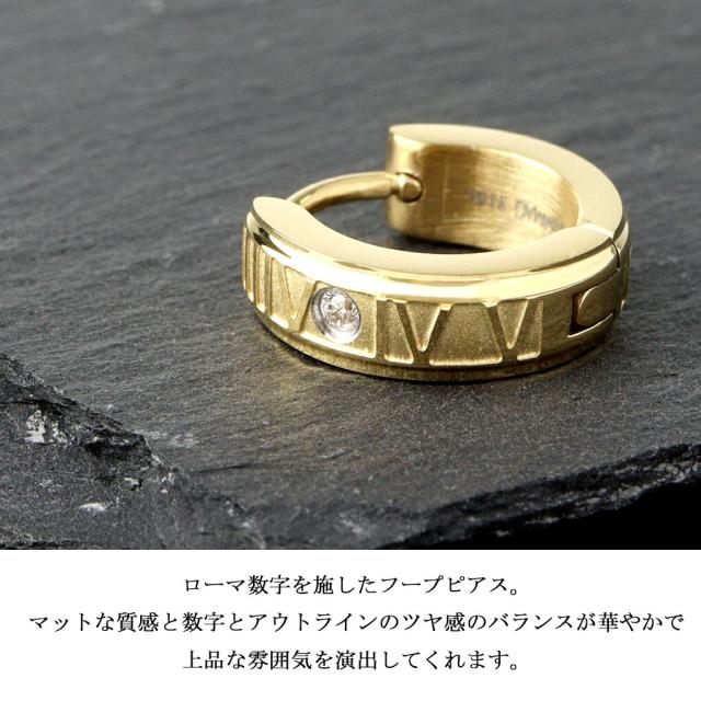 SCOMMAG ナンバー フープ ゴールド ステンレス ピアス 1P 片耳用 ジルコニア ステンレスピアス フープピアス サージカルステンレス 金属アレルギー
