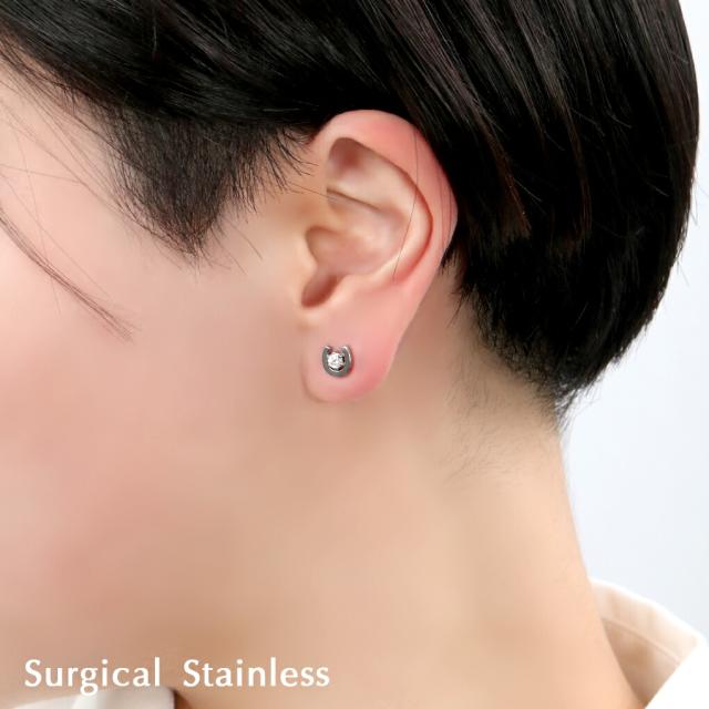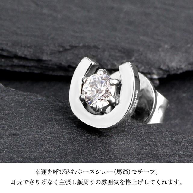 SCOMMAG ホースシュー ステンレス ピアス 1P 片耳用 馬蹄 ジルコニア ステンレスピアス スタッドピアス サージカルステンレス 金属アレルギー