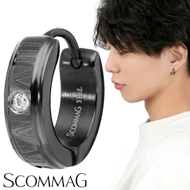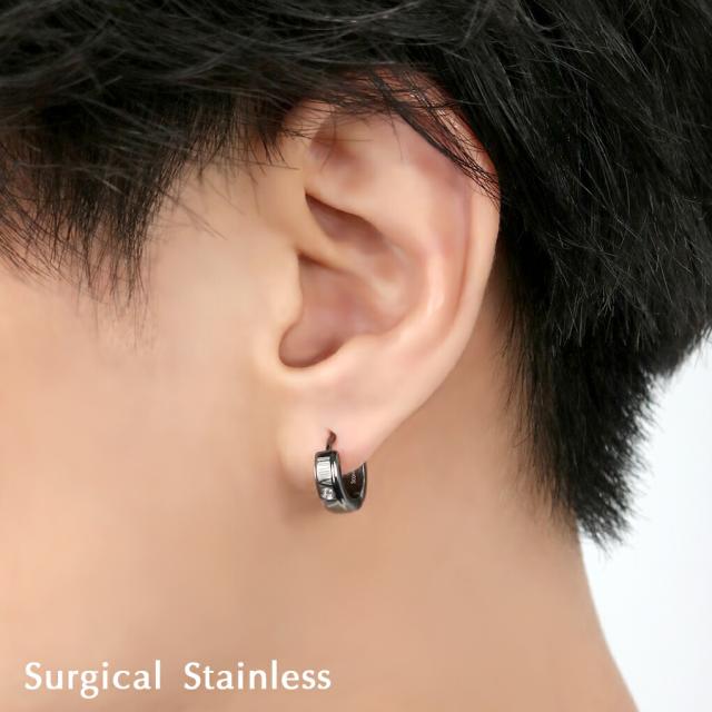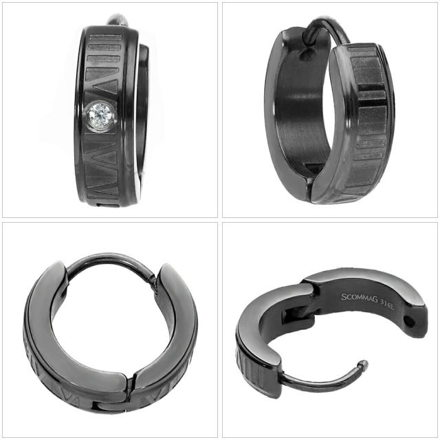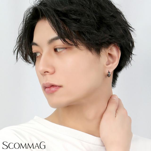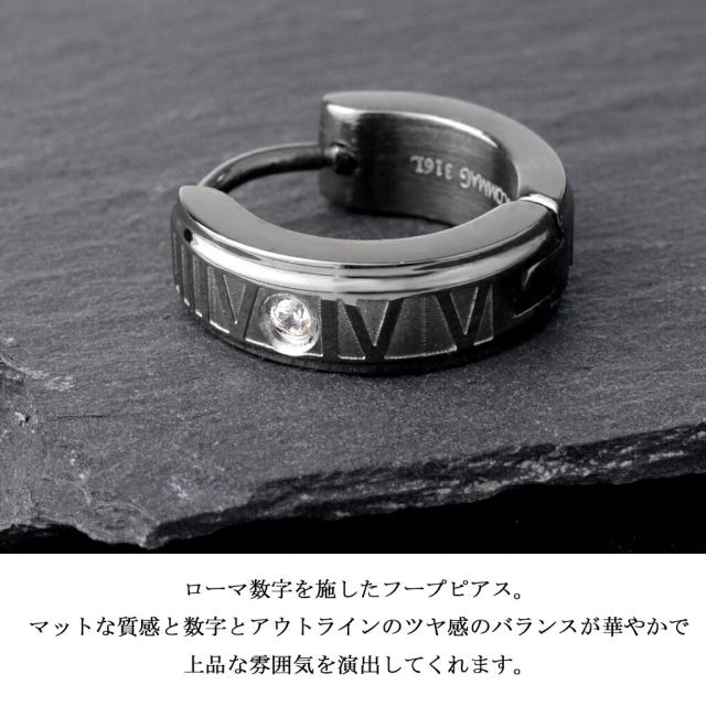 SCOMMAG ブラック ナンバー フープ ステンレス ピアス 1P 片耳用 黒 メンズピアス ジルコニア ステンレスピアス フープピアス サージカルステンレス