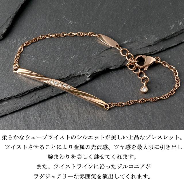 SCOMMAG ウェーブツイスト ステンレス ブレスレット Sサイズ ローズゴールド ジルコニア プレート レディースブレスレット ブレス