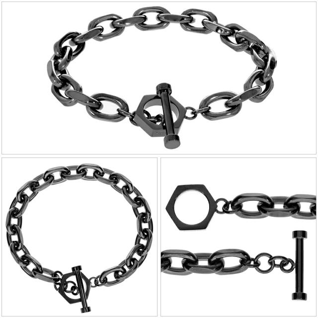 SCOMMAG マンテル ステンレス チェーン ブレスレット Lサイズ ブラック 黒 メンズブレスレット ブレス サージカルステンレス 金属アレルギー