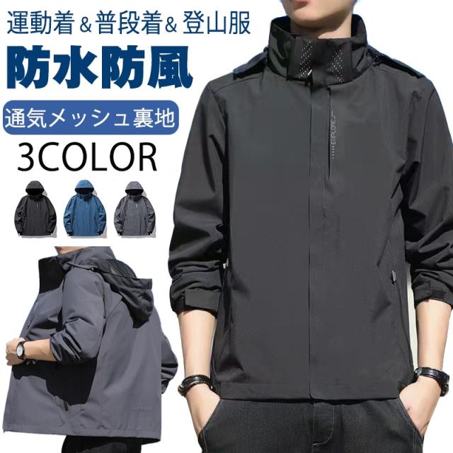 ウィンドブレーカー メンズ マウンテンパーカー 防水 防風 マウンテン ジャケット メンズ ウインドブレーカー アウトドアジャケット メッシュ裏地 通気 長袖 撥水 高機能 登山 フード付き ウィンドブレイカー