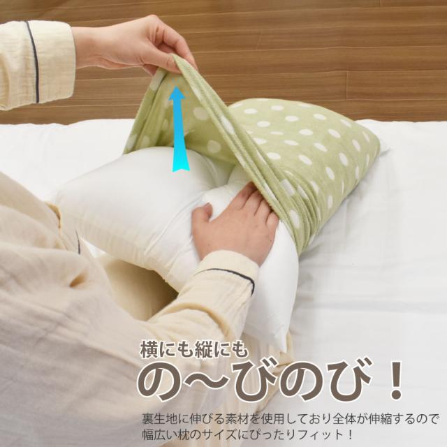 【2枚組】ピローケース 水玉 ストライプ ボーダー のびのび まくらカバー 伸びる 枕 のびる まくら カバー 伸縮素材 筒状タイプ カバー 大きい 低反発枕 35×50cm 43×63cm 対応