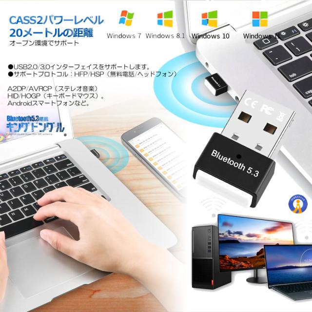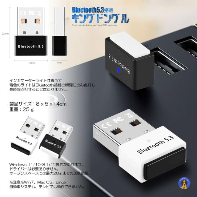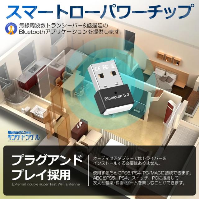 新型Bluetooth5.3 アダプタ ドングル USB EDR LE対応 省電力 低遅延 小型 パソコン 無線 音楽 イヤホン プリンター キーボード スピーカー RTL812