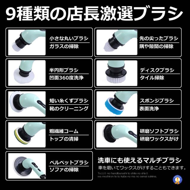電動ブラシ 掃除用 車掃除 電動 9種類 付替えブラシ ワックス お風呂 バス ポリッシャーワイヤレス ハンディ 柄付ブラシ マルチブラシ BRABRAPO s-kk2311-38a