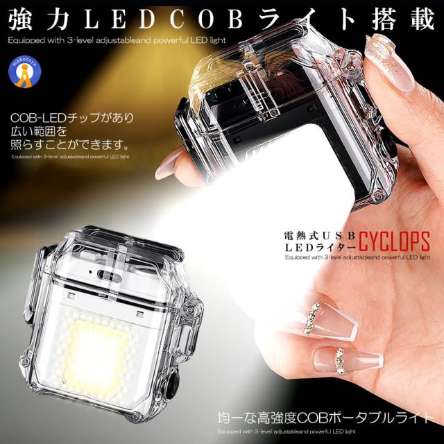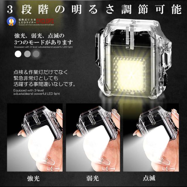 2個セット 電熱式 ライト付き ライター COB 照明 懐中電灯 3段階光モード ポケット 防水 作業灯 読書灯 COBRAIRAI