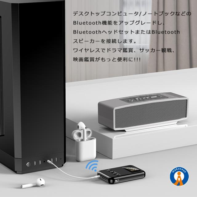 ・Bluetooth非搭載のパソコンやテレビに接続して、Bluetooth対応イヤホンやスピーカーとのワイヤレス接続を可能とします。