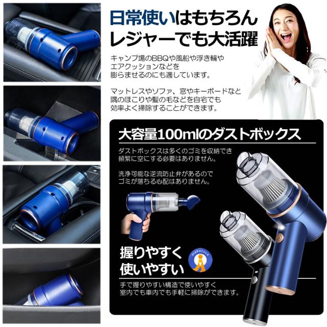 2個セット ハンディクリーナー 車載掃除機 8000pa 強吸引 コードレス 掃除機 USB充電式 LED 電動エアーポンプ GODSOJI s-kk2403-40a