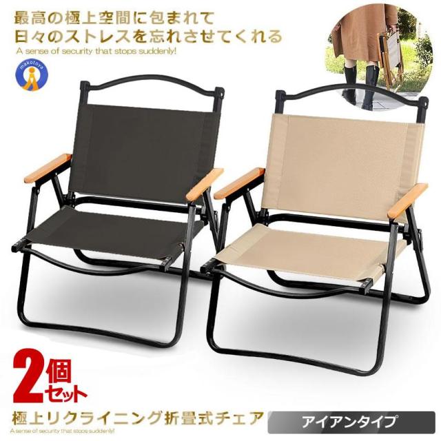 2個セット アウトドア チェア 軽量 アイアン素材 1人用 折りたたみ キャンプ チェア 組立不要 木目 ローチェア キャンプ アウトドア 活躍 人気 防水 IRONCHH
