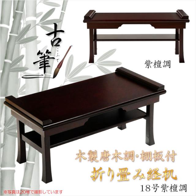 伝統型経机【木製唐木調・棚板付 折り畳み経机:古筆(こふで)紫檀調18号】仏壇 仏具 法事 お盆 送料無料