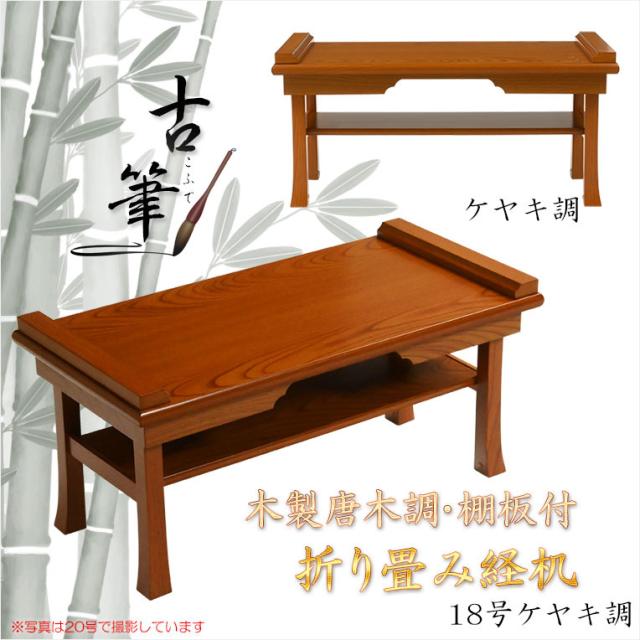 伝統型経机【木製唐木調・棚板付 折り畳み経机:古筆(こふで)ケヤキ調18号】仏壇 仏具 法事 お盆 送料無料