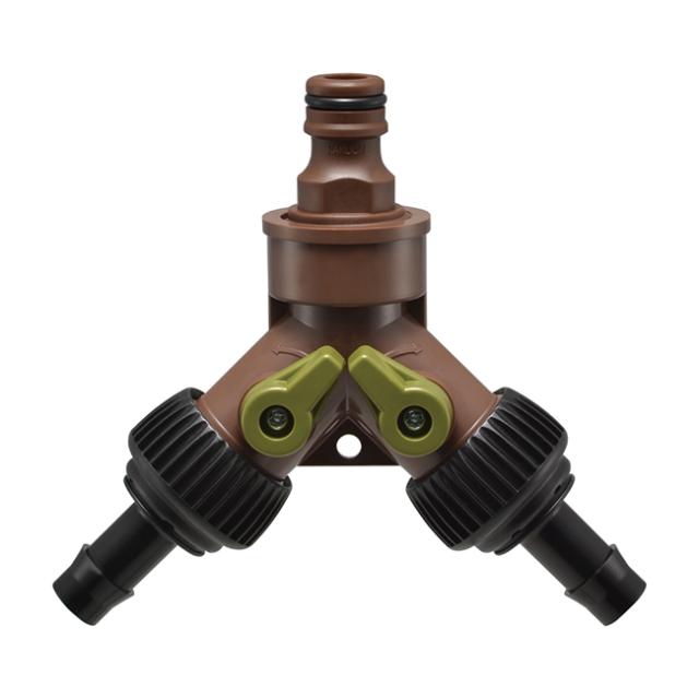 カクダイ/GAONA/ガオナ 【GA-QF066】コックつき分岐接手 ホース分岐ニップル ウォータースプレイパイプ用 ブラウン これエエやん〔▽〕