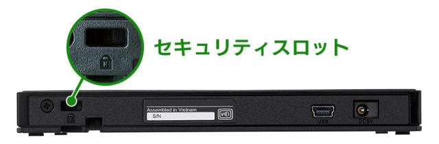 セキュリティワイヤー・ワイヤーロック・ケンジントンロックに対応したセキュリティスロットを製品背面に搭載。机などにドライブを固定することができるので、盗難や無許可の持ち出しを防ぎます。