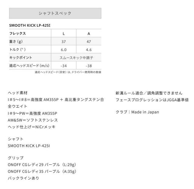 【レディース】【2025モデル】オノフ アイアン レディ 4本セット(#7〜#9,PW) シャフト:SMOOTH KICK LP-425I カーボン ONOFF IRON LADY
