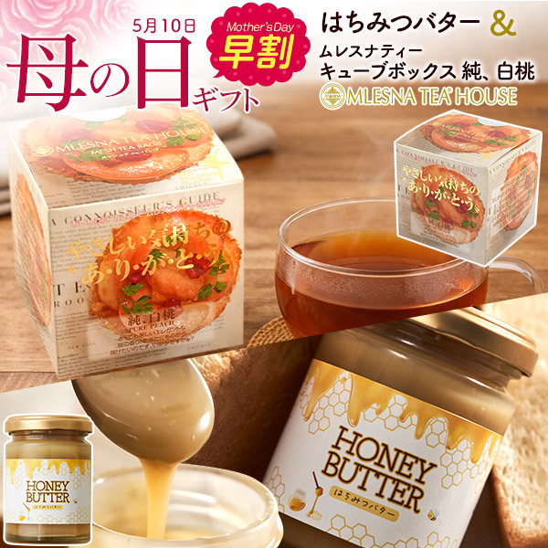 母の日ギフト 紅茶 & はちみつバター セット ムレスナティーハウス ティーバッグ MLESNA TEA HOUSE キューブボックス「純、白桃」ハチミツバター 蜂蜜バター お茶 ドリンク 飲み物 常温 母の日の贈り物 母親 お母さん ママ 人気 プレゼント 予約 早割 送料無料