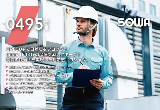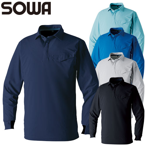 作業服 ポロシャツ 長袖 桑和 SOWA 長袖ポロシャツ(胸ポケット有) 0495-50 作業着 春夏 ストレッチ 吸汗速乾 消臭 UVカット冷感 男女共用 ビッグポケット付 幅広いサイズ展開
