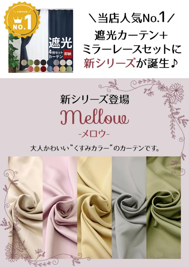 カーテン 4枚セット 2枚セット 遮光カーテン 1級 カーテン レース ミラー メロウ (Y) 100幅 150幅 200幅 丈135cm/178cm/200cm カーテン おしゃれ カーテン 遮光 ミラーレースカーテン 無地 シンプル 防音 カーテン 安い まとめ買い カーテン 4枚組 2枚 遮音 くすみカラー