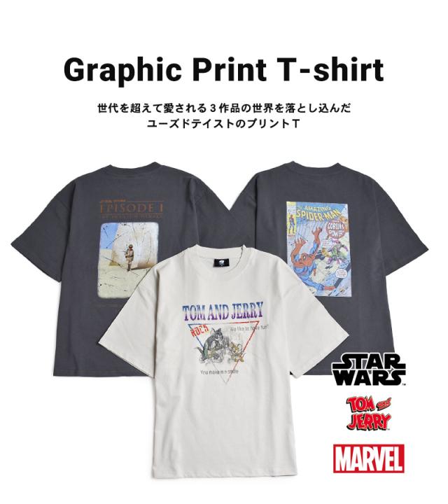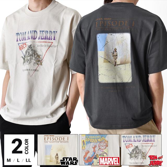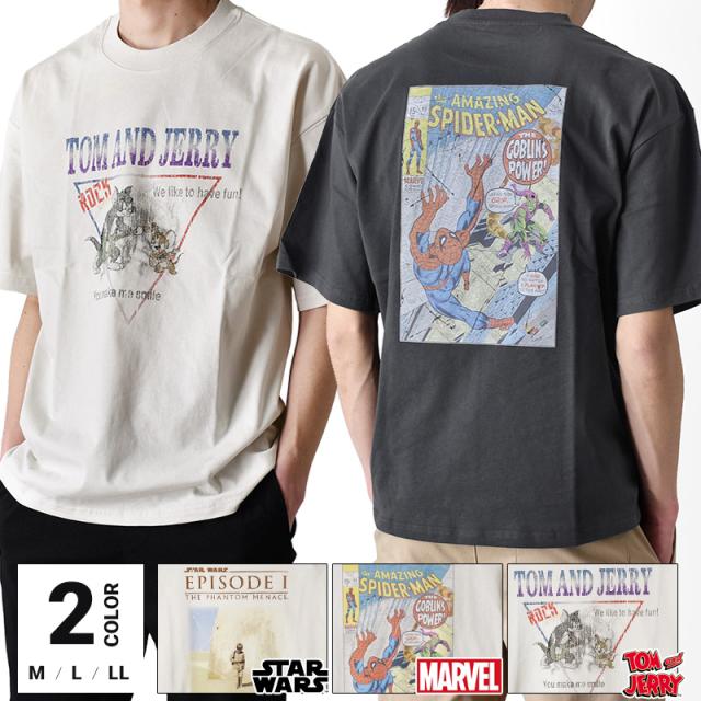 Tシャツ メンズ 半袖 トムとジェリー スパイダーマン スターウォーズ MARVEL ピグメント【ゆうパケット送料無料】【1-D2T】