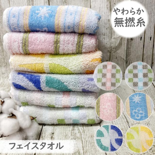 やわらかパイル 無撚糸 ジャガード フェイスタオル 約34×80cm ドット ストライプ スポーティー ふわふわタオル 柄タオル 新生活 柄タオル 薄手 やわらか 淡いカラー プチギフト 汗拭き 手拭き タオル キッチン 洗面所 花柄 おしゃれ 毎日使いに 可愛い