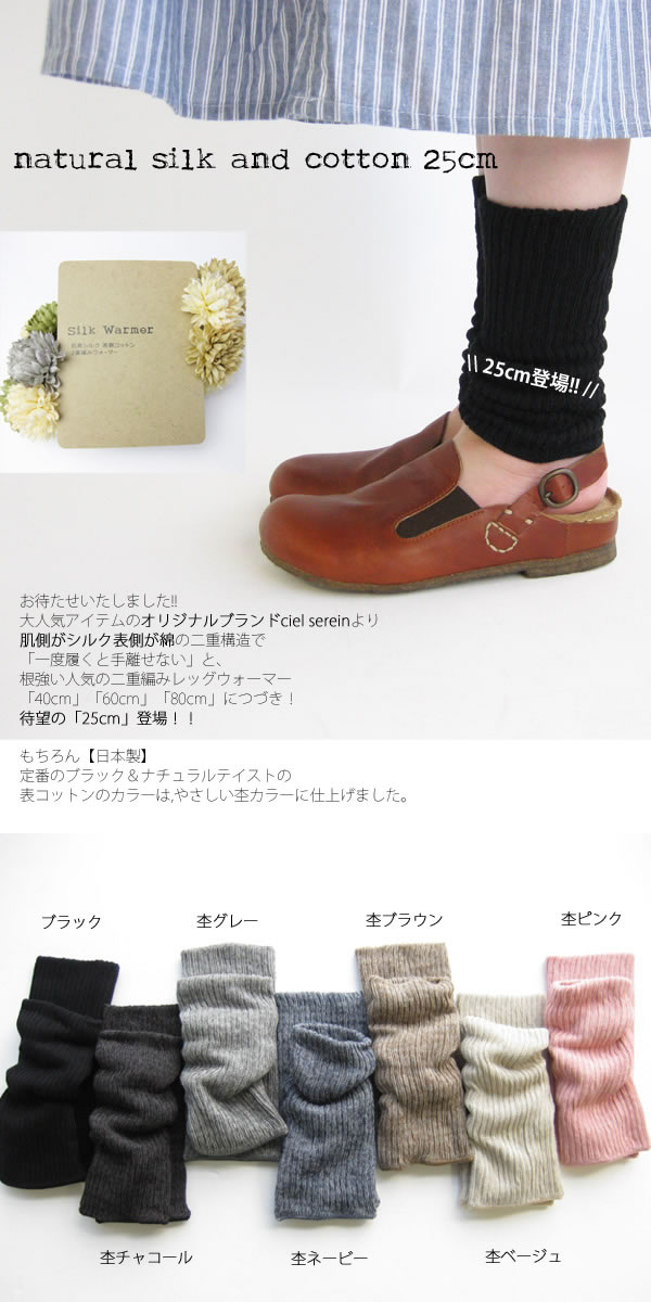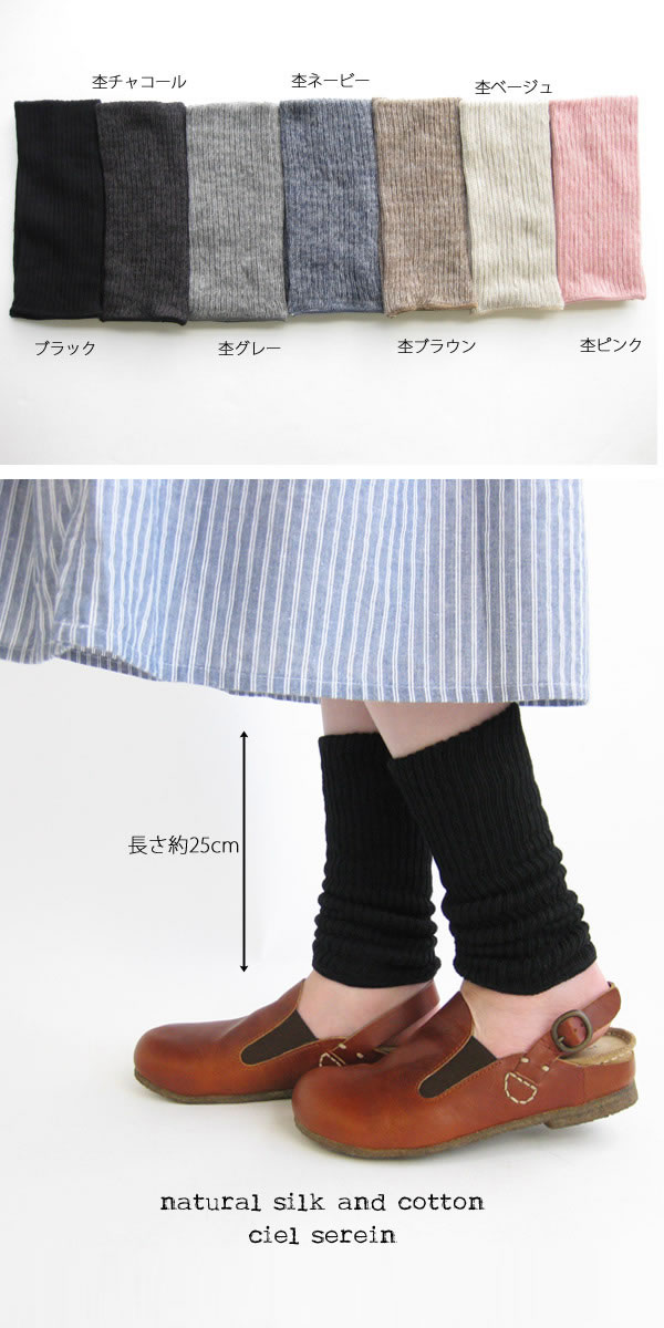 シルクレッグウォーマー 25cm アームウォーマーシルク&コットン 日本製 二重編みウォーマー ciel serein しめつけない レディース おしゃれ かわいい 冷え性 無地 防寒対策 あたたかい 冷え取り保温 温めグッズ シルク やさしい肌触り 足首 シルク 秋冬 裏 絹100% 表 綿100%