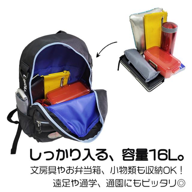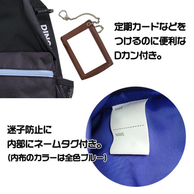 内側:メイン収納+クッション入りオープンポケット×1(ゲーム・ipd収納に◎)、ネームタグ付き。