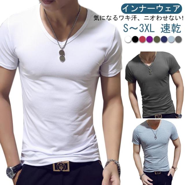 メンズ Tシャツ 大きいサイズ V首 インナーシャツ Vネック 下着 半袖 Uネック 丸首 インナーシャツ 男性用 アンダーシャツ クルーネック 長袖Vネック 肌着 紳士 コットン 白 黒 無地 定番 シンプル オフィス
