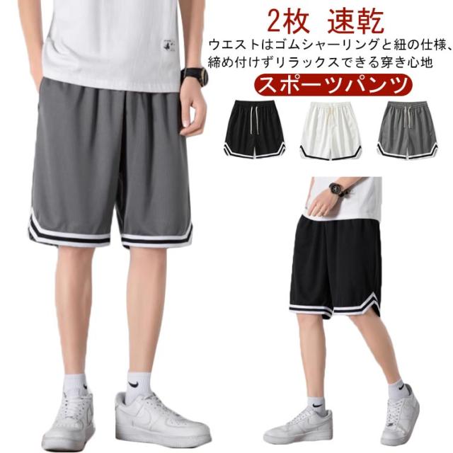 レディース メンズ バスケットパンツ バスケパンツ 速乾 スポーツウェア バスケ 2枚セット 無地 ハーフパンツ ズボン ジャージ 運動着 スポーツ 短パン バスパン ランニング トレーニング 膝上 ショートパンツ ジュニア 送料無料 運動会 体育祭 通気 半ズボン