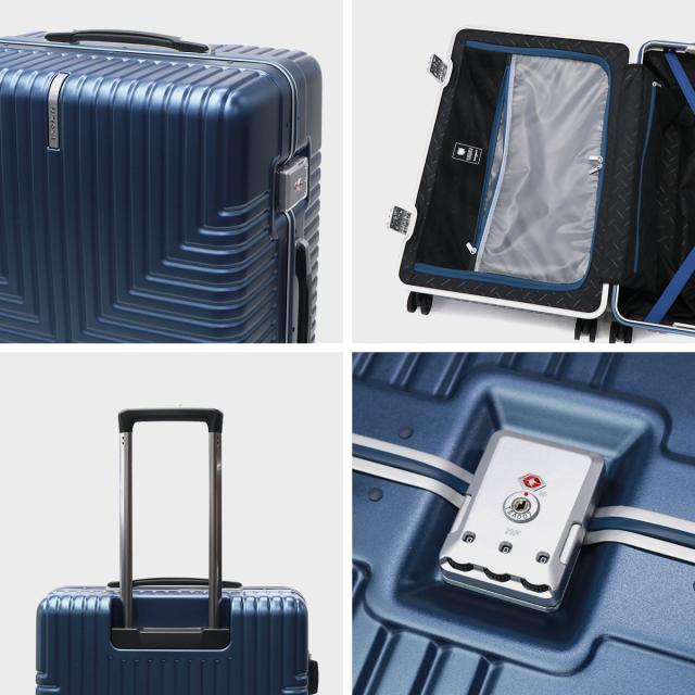 光沢のあるアルミフレームに、縦横の溝が交差するデザインが特徴的な「インターセクト」シリーズ。73Lの大容量で、6〜7泊の旅行に最適です。TSロックを搭載したフレームタイプで防犯性に優れ、国内外問わず安心してお使いいただけます。