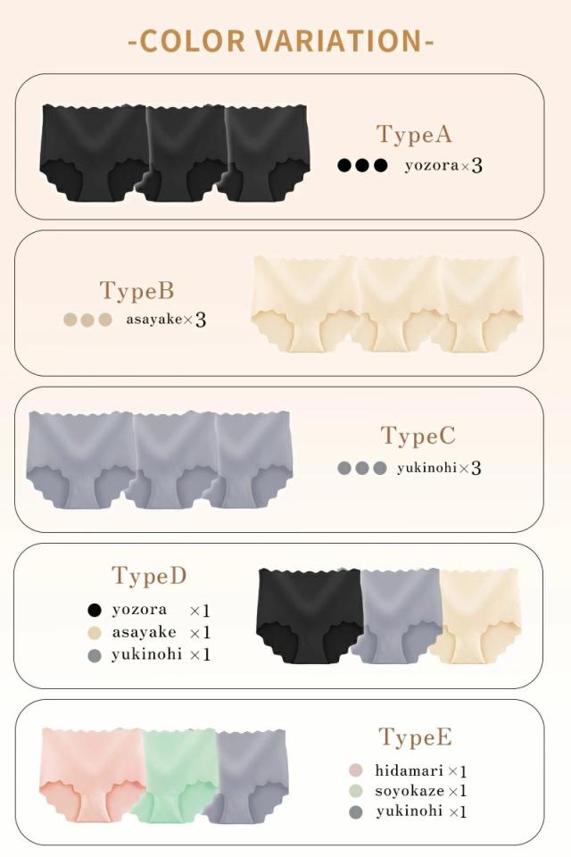 タイプD: yozora×1 / asayake×1/ yukinohi×1 (ブラック×1 / ベージュ×1 / グレー×1 )