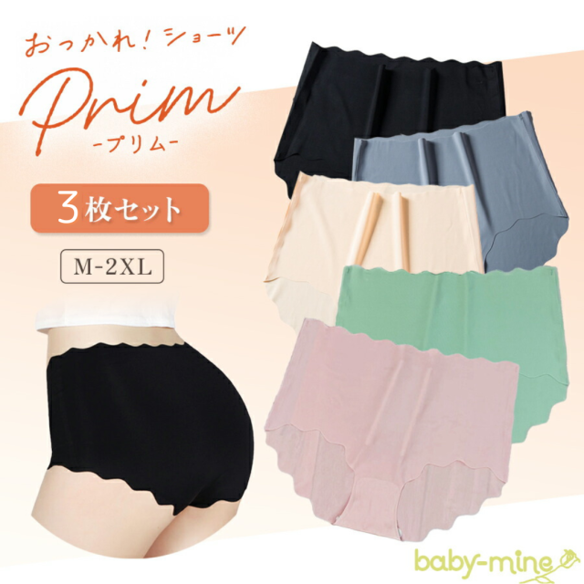 【3枚セット】シームレスショーツ シームレス ショーツ セット パンツ レディース 下着 敏感肌用 女性 桃尻 深履き 大きいサイズ 通気 無縫製 縫い目なし 伸縮性 深め シンプル ショーツ prim baby-mine