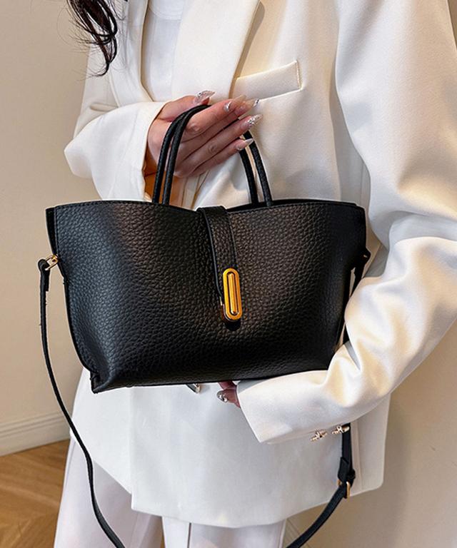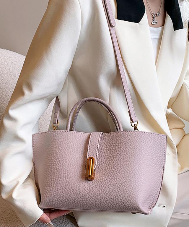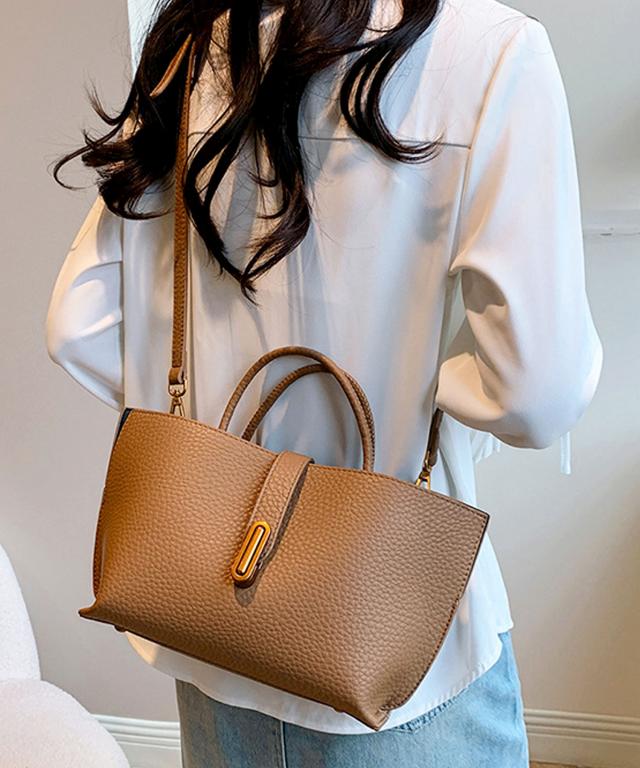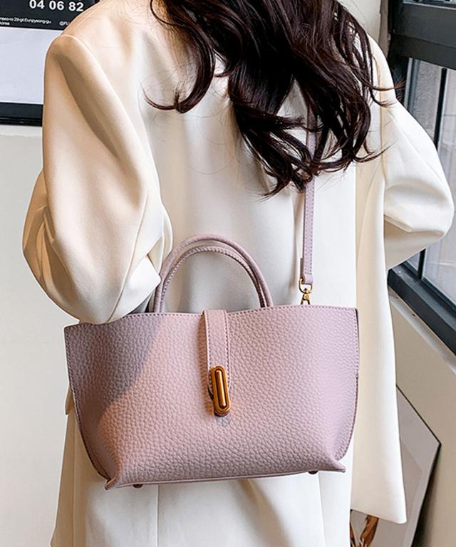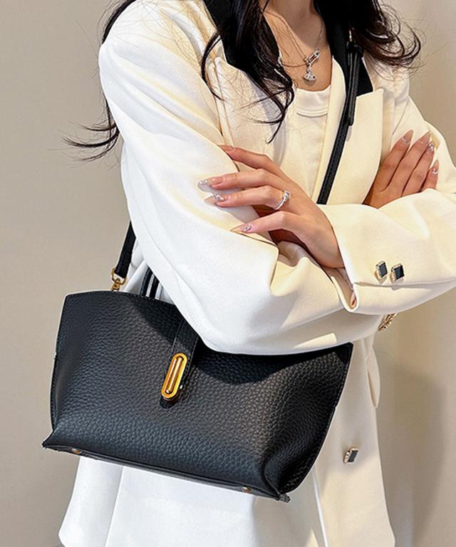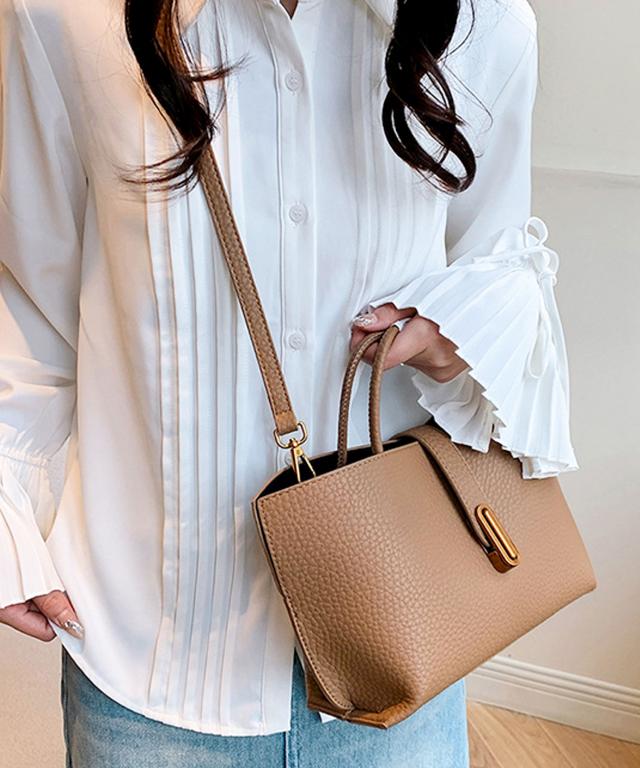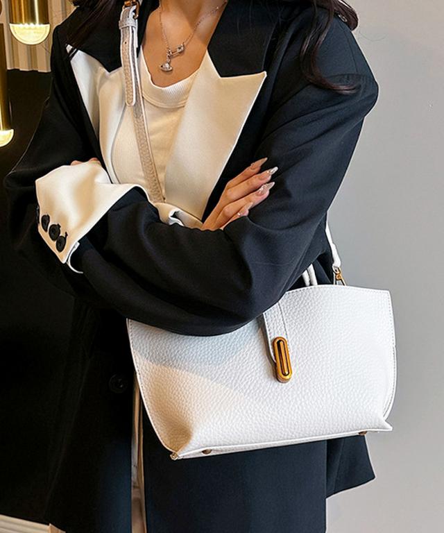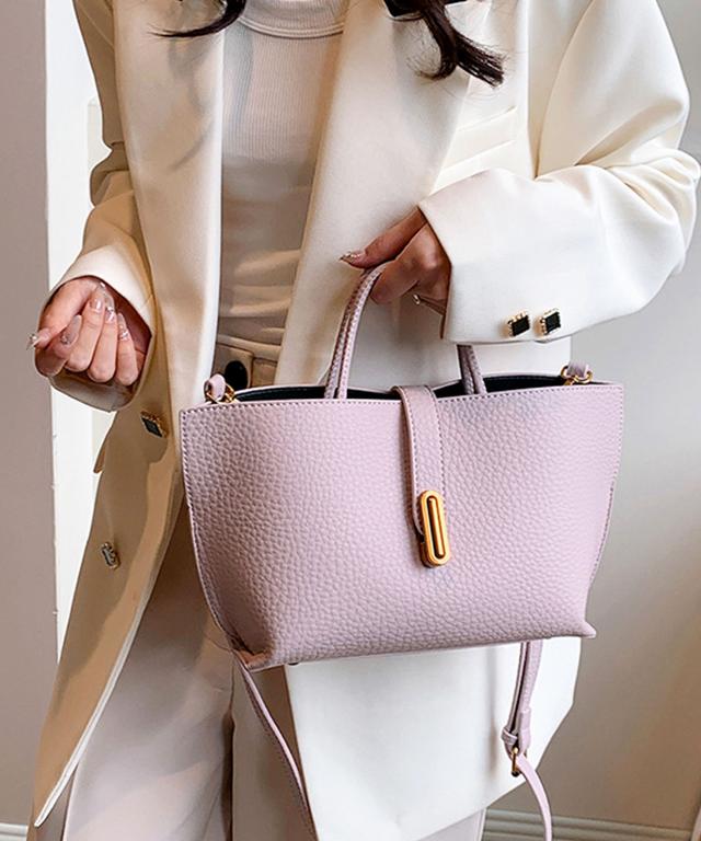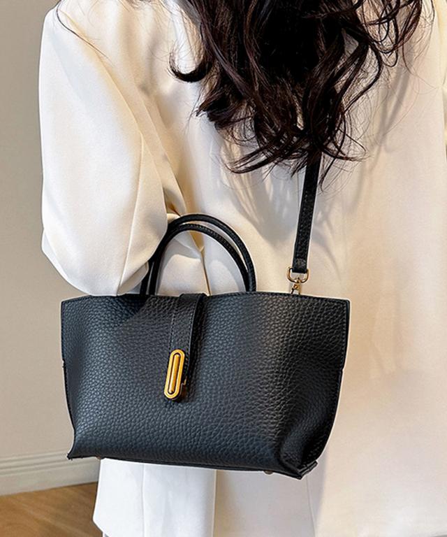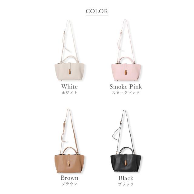 シボが高級感を漂わせる上質なPUレザーを使用し、トップベルトで抜け感をプラスしたエレガントルック。