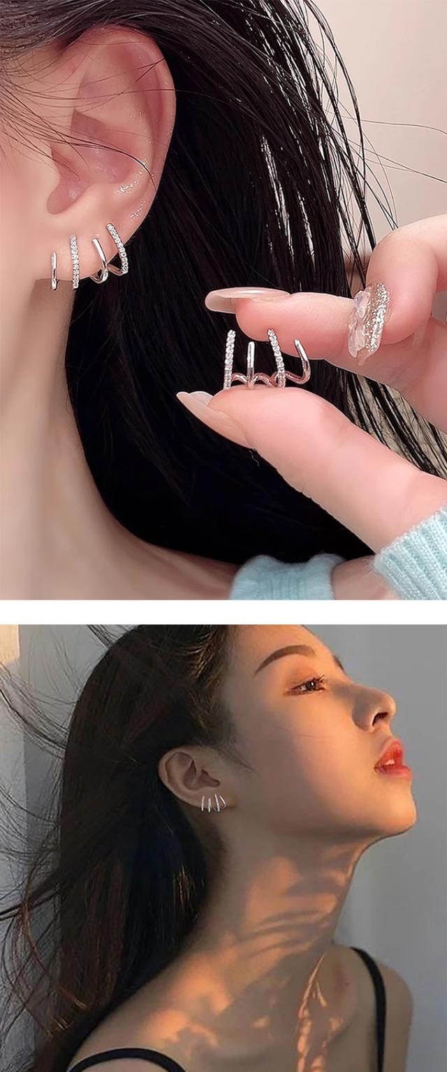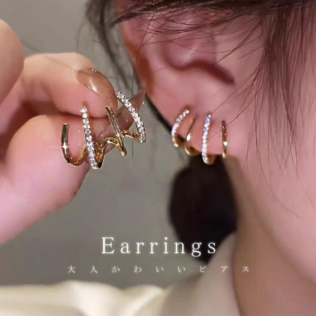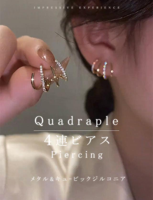 ピアス 両耳用 イヤリング ジルコニア メタル 4連 コーティング 大人 綺麗め かわいい エレガント カジュアル ジュエリー トレンド 流行 おしゃれ アイテム プレゼント