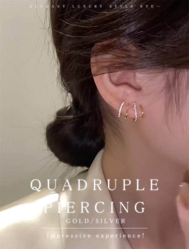 1つのホールで4連ピアスが楽しめるピアス。 キラッと輝くキュービックジルコニアとメタルが交互に配置されたデザイン、