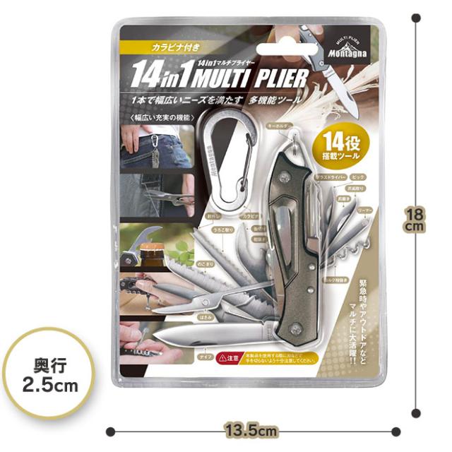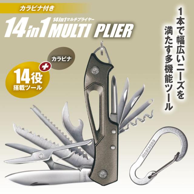 携帯工具 多機能 【購入特典付】 携帯ツール 14in1 マルチプライヤー カラビナ付き 災害 防災グッズ