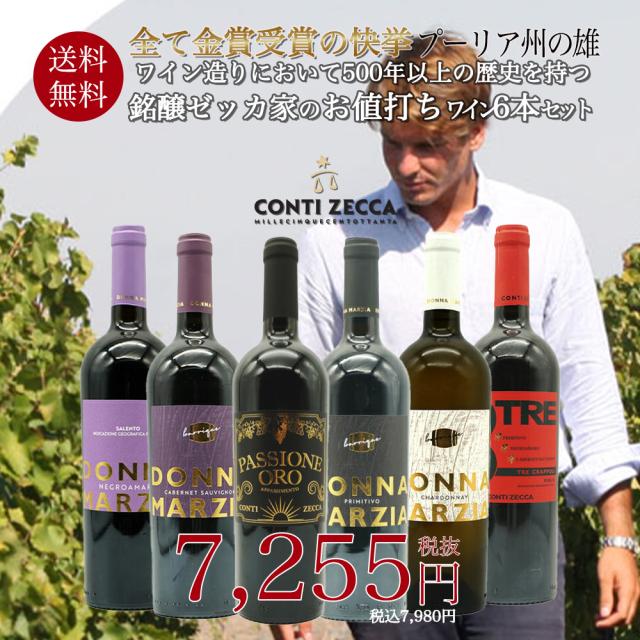【送料無料】全て金賞受賞の快挙!プーリア州の雄 コンティ ゼッカ スペシャル飲み比べワインセット(赤5本&白1本)