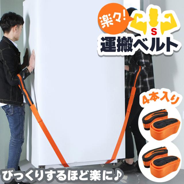 運搬ベルト 4本2組 引越し 引っ越し 作業用 運搬用 引っ越し用 キャリーベルト 重い荷物 家具 大型家電 電化製品 冷蔵庫 洗濯機 テレビ タンス 食器棚 ソファー 階段