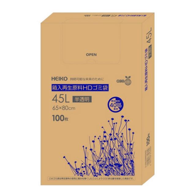 HEIKO 箱入再生原料HDゴミ袋 45L 半透明 100枚入 006605400 【北海道・沖縄・離島配送不可】