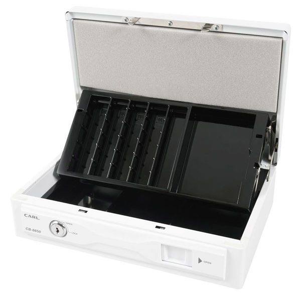 (まとめ買い)カール事務器 手提げ金庫 そとレジ キャッシュボックス ホワイト CB-8850-W 〔×3〕 【北海道・沖縄・離島配送不可】
