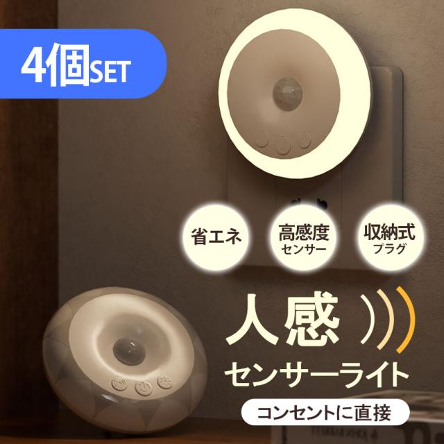 センサーライト 人感センサーライト 4個セット コンセント フットライト 屋内 屋外 人感センサー 調光 明るさ 調整 調節 タイマー 自動点灯 消灯 LED センサーライト 室内 玄関 廊下 トイレ 階段 明るい おしゃれ 常夜灯 寝室 台所 防犯グッズ 照明 節電 省エネ