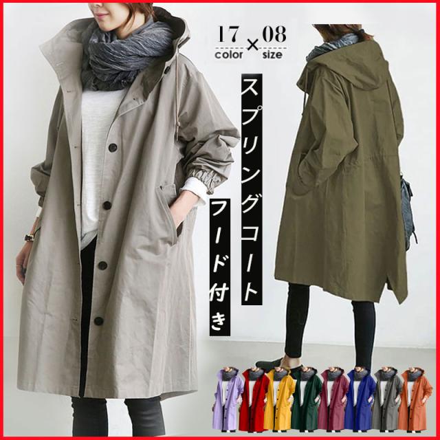 超値引き トレンチコート レディース ロングコート アウター フード付き モッズコート ロング ゆったり 春 秋 春コート【 フード付きスプリングコート 】 大きいサイズ