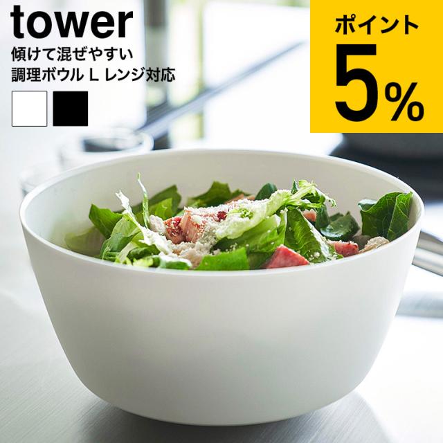 山崎実業 tower 傾けて混ぜやすい調理ボウル タワー L 電子レンジ対応 公式 1389 1390 ホワイト ブラック 4L キッチンボウル ボール プラスチック 耐熱 耐冷 冷凍 食洗機 調理器具 キッチンツール JGS