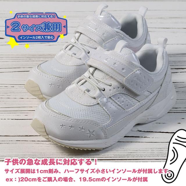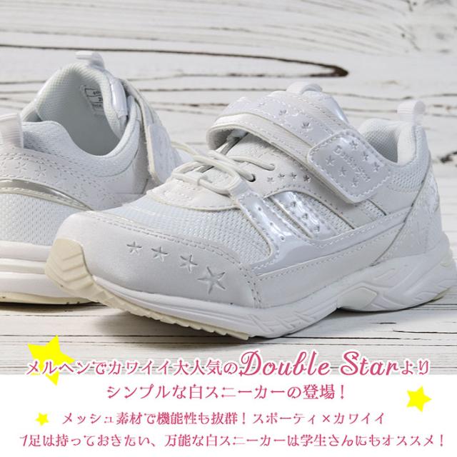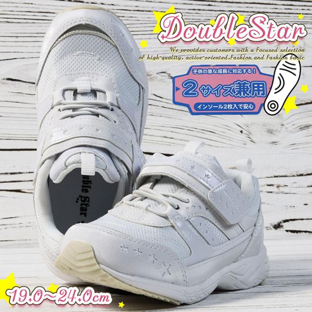 ホワイト 白 キッズ 通学用 DoubleStar Y_KO 4690 7986862 スニーカー 2サイズ兼用 シューズ 男の子 女の子 新学期 運動靴 子供靴