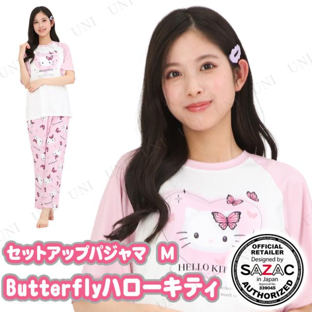 SAZAC(サザック) Butterflyハローキティセットアップパジャマ ピンク×ピンク レディスM サンリオ ルームウェア レディースファッション 女性 リラックス